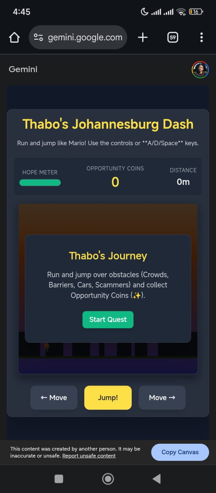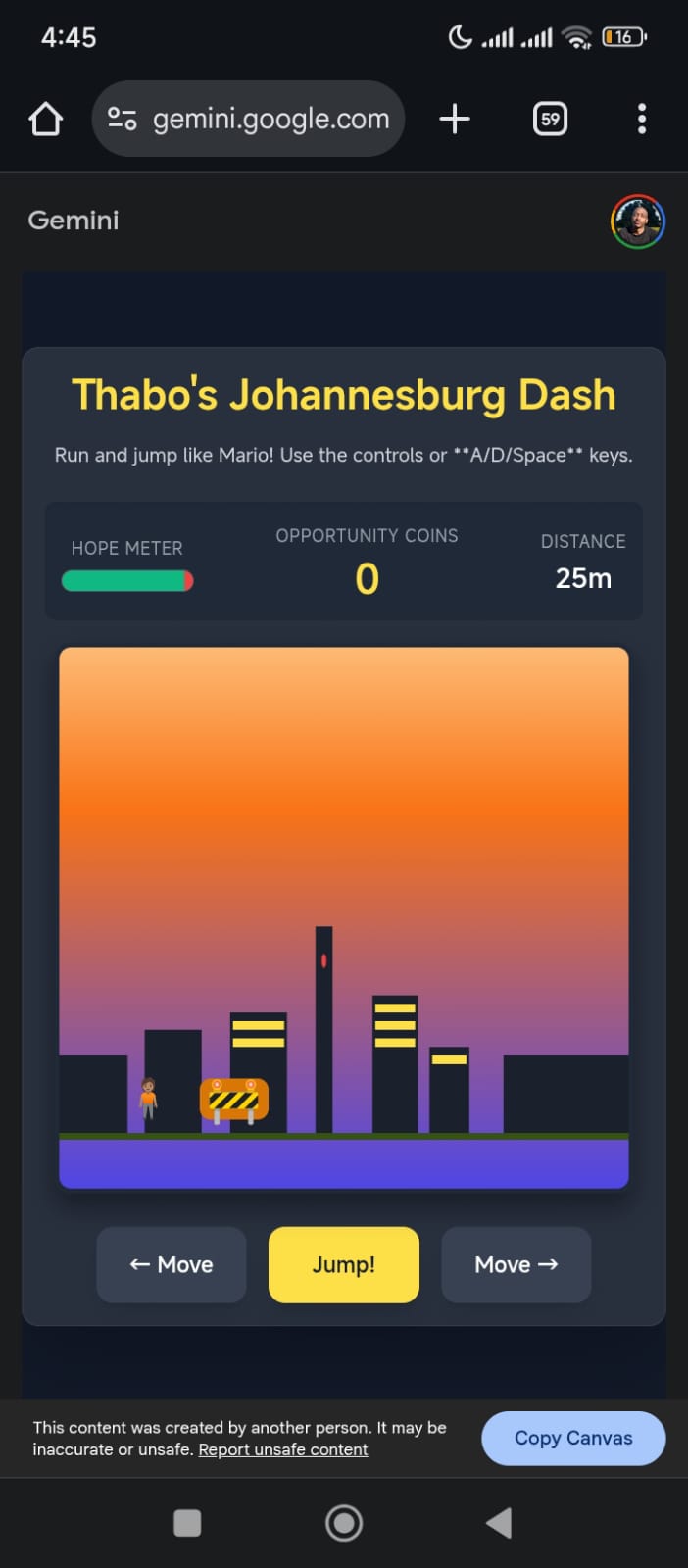 2. The game runs on Gemini Canvas no need for downloads its a web Application,